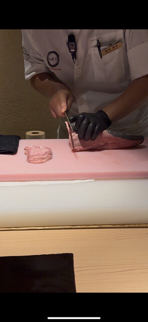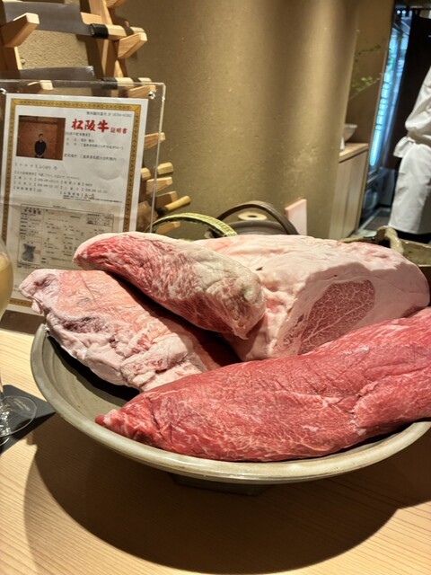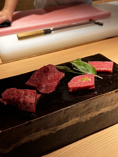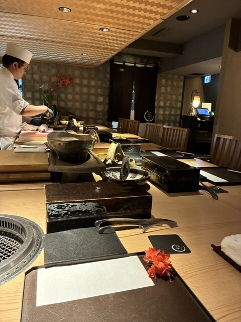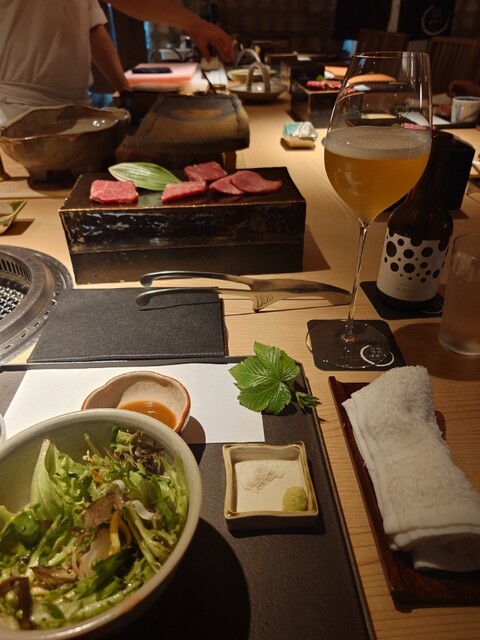 婚姻届出した日に。内装素敵。カウンター途中まで誰もいなくて貸切気分だった。中で料理人が焼いてくれたけどこれはたまたま他にお客さんがいなかったからで基本はカウンターといえども自分で焼く、お肉きってるとこ...