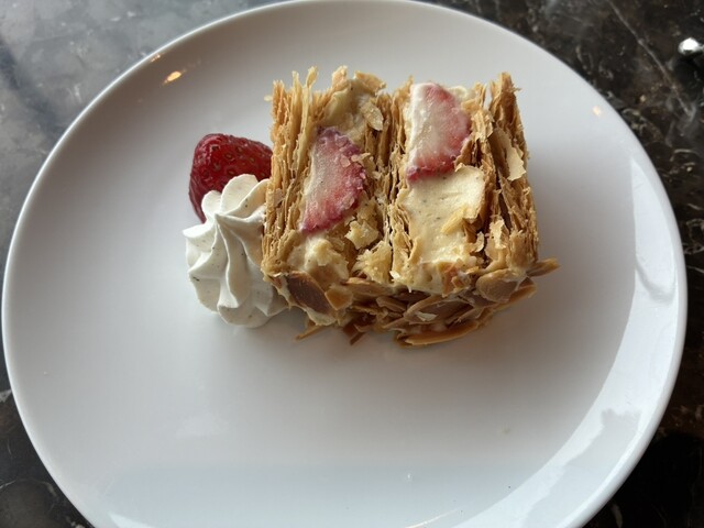 平成27年(2015)年に閉店したマキシム・ド・パリの元総支配人と初代シェフパティシエ植村翁氏監修のもとナポレオンパイを復刻した苺のミ...