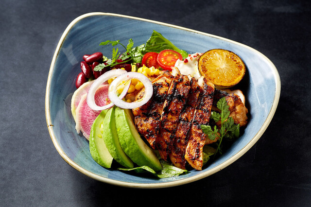 ガラス張りで高い天井は開放感があり、カリフォルニアを感じさせるインテリアでお洒落な空間です。人気のDavid特製バーガー、カラフルなパワフルサラダに人気のフレンチトーストに加えパフェやデザート等もございますので用途に合わせてお楽しみください。