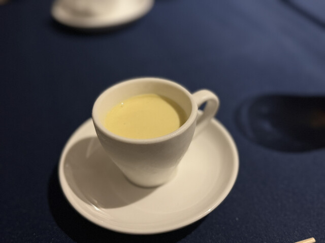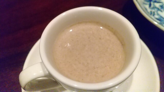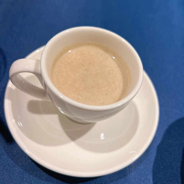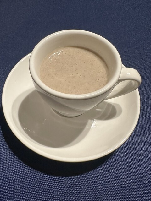 最初に出てくるキノコのポタージュが大変美味しく、次への期待が高まる。