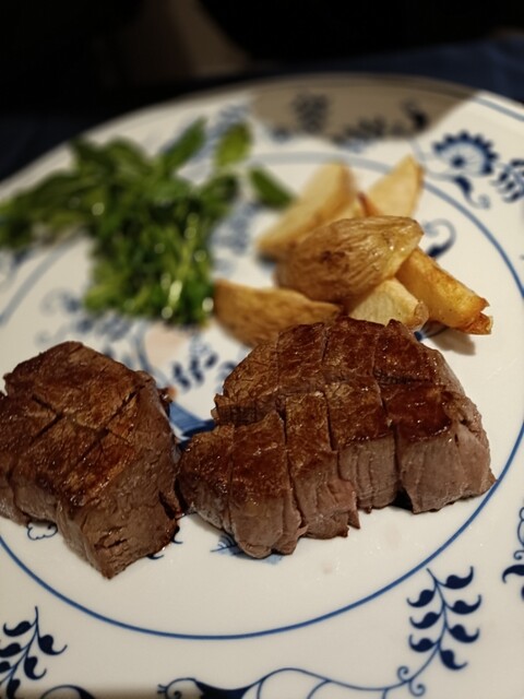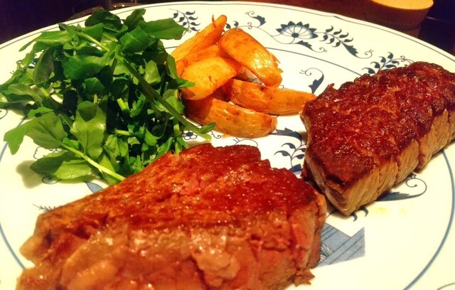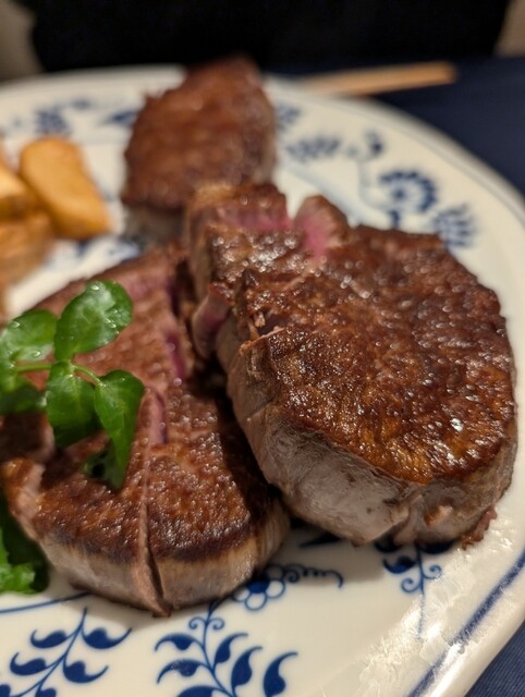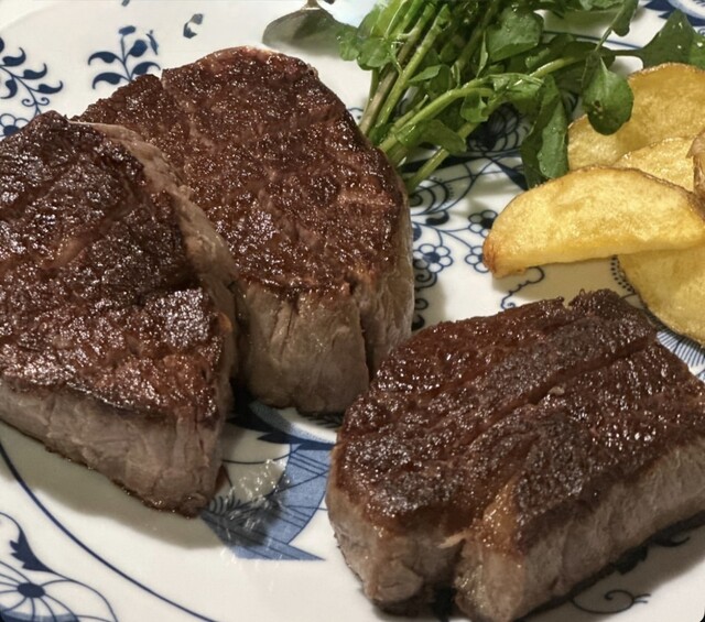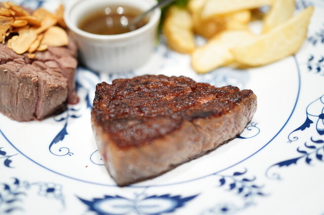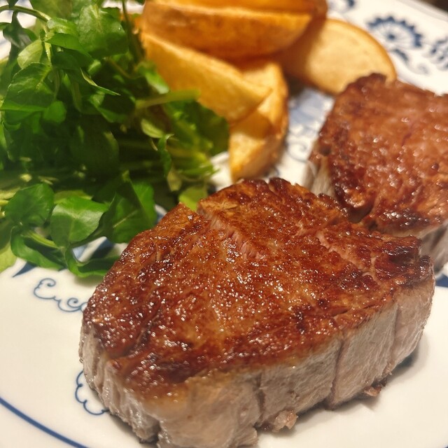 夜のコースでサーロインとフィレのコースを一つずつ注文。
