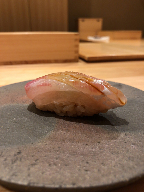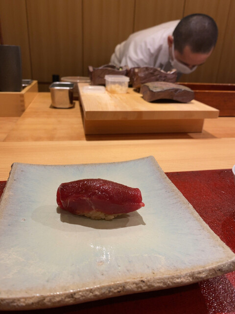 こちらの店主の小川武士さん。日本料理からキャリアをスタートさせた後に寿司職人になられたそうで。その後、銀座7丁目のクラブ街にも近い好立地で「鮨おがわ」で店主として数年腕をふるった後に東銀座の今の地で独立された。
