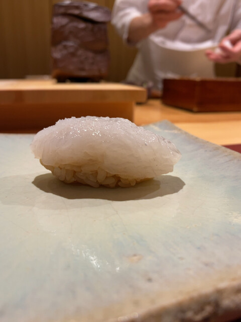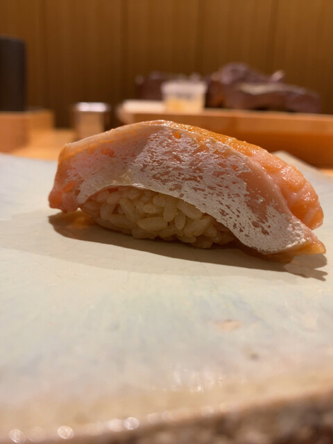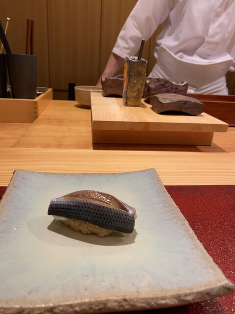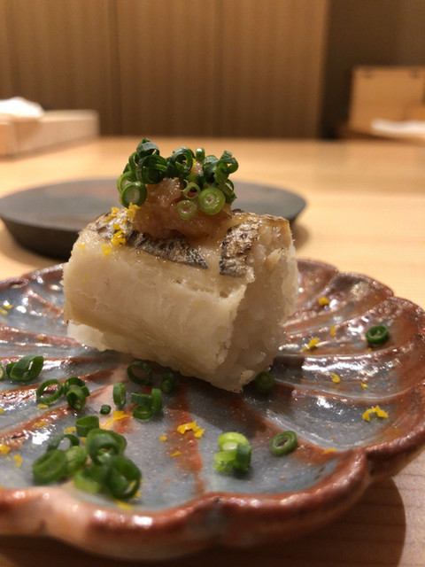 ◯押し寿司とか蒸し寿司なども出される。太刀魚の蒸し寿司やアナゴの蒸し寿司が記憶に残る(2022年秋の時点では蒸し寿司や押し寿司はやられなくなっています)。