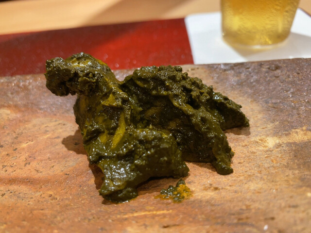 おつまみの最後は雲丹、鮟肝、唐墨のセット。雲丹と鮟肝は味噌漬け。