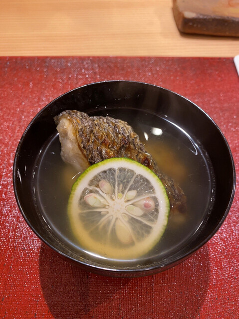 そしてお碗・・・日本料理店並みにキチンとしたお碗!秋だったら素直に松茸とか、期待を裏切らないご対応だ(とはいえ、2022年秋の時点ではお椀はやってらっしゃいません)。