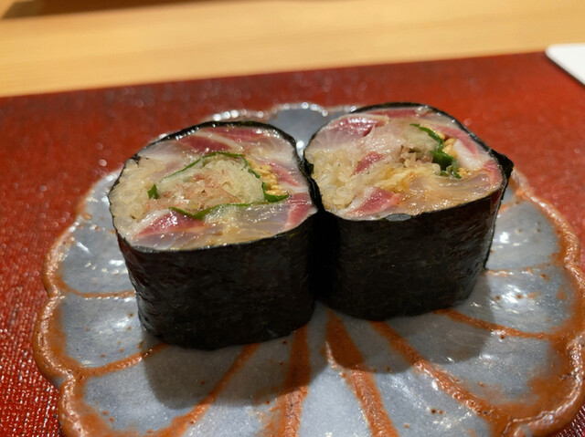プレゼンの重要性も分かっておられて、やはりとても気を遣っておられる。たとえば、客の前で舎利切りを見せてくれて、一番舎利でまずは何か巻物を一つ作ってくださったりもする(2022年秋の時点ではやられなくなっています)。
