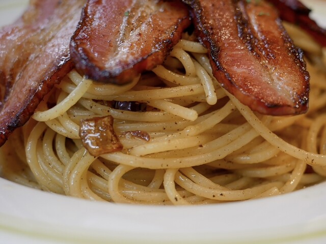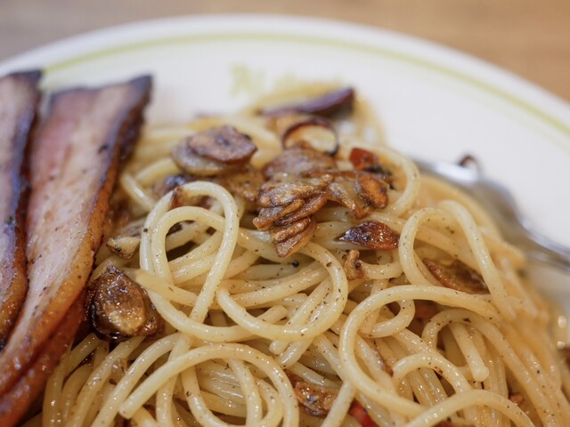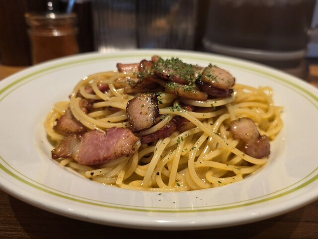 今回いただいたのは、カルボナーラ(普通サイズ)。