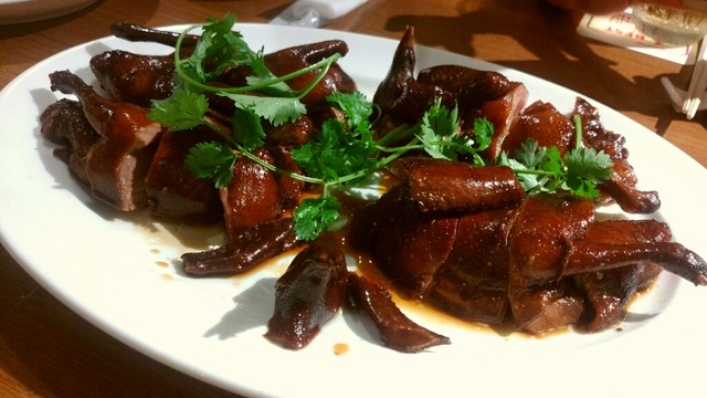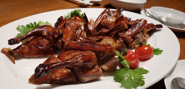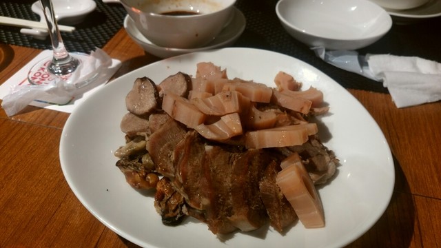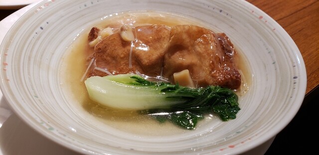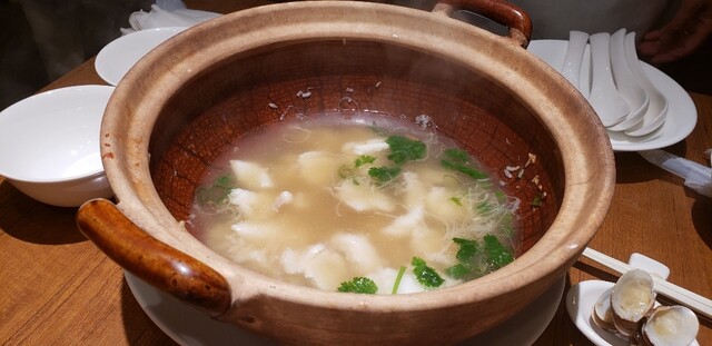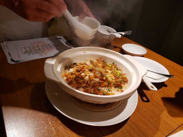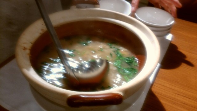 ここは、かつて香港の水上生活者が食べていた避風塘料理を出す店で、そこの日本支店第一号。避風塘料理とは海鮮をにんにくの効いたスパイシーなソルトでいためたものが代表的で、ちょっとジャンキーだがやみつきになる旨さ。それを目指してこの店に来る価値は充分にある料理だった。しかし先日、支配人の楊さんに10人のメニューを相談したところ出て来たのがこれ。旧正月を祝って牛タンを使った例湯や乳鳩の醤油漬け、豆苗と塩ピータンのお浸し、ハムユイトひき肉の蒸し物を乗せた土鍋ご飯でお焦げは上湯で雑炊風にしたものと避風塘料理を組み合わせたメニュー。もろ香港料理、これは楽しいよね。聞けば支配人は20年以上も東京で香港料理をやってきたとか。中華はこういうおもしろさがいいよね。使い方次第で、この店はいくらでも化けそう。
