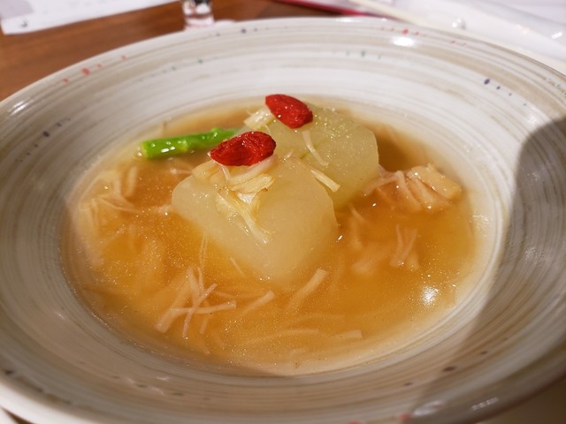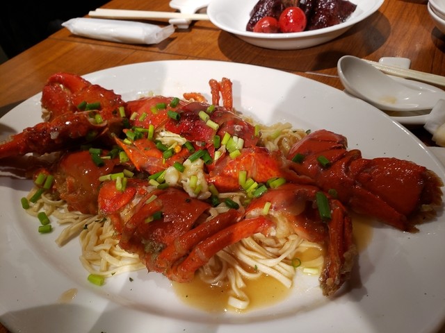 スパイシーな料理は美味しいけど多すぎると飽きるけど、ここの蔡料理長はそこをよくわかっているからスパイシーな料理は二種類で、あとは季節の香港料理をいれているところがいい。メインも、ここの名物はカニだけど今回のロブスターは食べやすいし、身も多くて満足。味付けも穏やかで、食後感がいい。特別コースは11月まで、まだまだ間に合います!