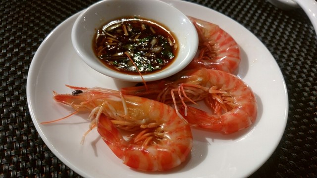 ・活車海老の湯引きソース添え
