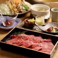神戸牛のA5ランクの赤身肉を使用した出汁しゃぶとすき鍋がメインのコースとなっております。神戸牛のユッケ小丼などの前菜から、しゃぶしゃぶ、すき鍋まで神戸牛を堪能できる会席コースとなっております。 更に出汁しゃぶの肉を霜降りと赤身の盛合せに変更(+2,200円(税込))も承りますのでご予約際にお伝えください。 【追加プラン】 ・事前予約で+2,000円(税込)で飲み放題(2H)をご利用可能。 ※献立内容は仕入れ状況により予告なく変更になる場合がございます。