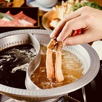 【椿-ツバキ-】神戸牛霜降りと赤身2種を食べ比べ+ズワイガニ「出汁しゃぶ/すき鍋会席」17,000円(税込) 《+2,000円で飲み放題に変更できます。》13品