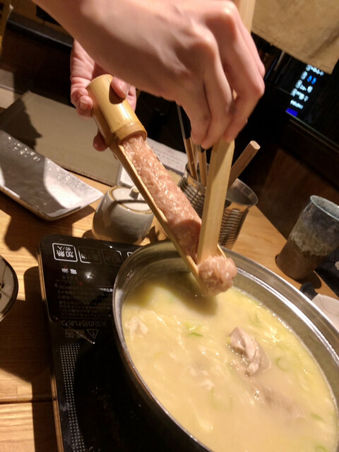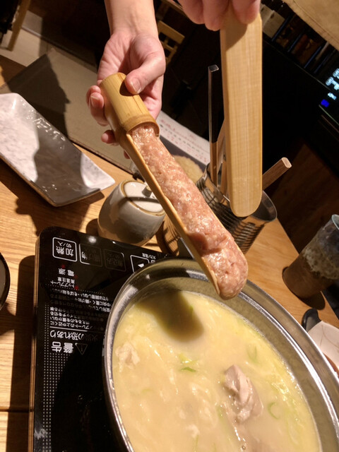 「まずはスープともも肉・ぶつ切り。次に切身むね肉をしゃぶしゃぶ。自家製つくねを投入し、旨みたっぷりのスープに野菜もいれて、〆にそうめんを。食べればわかります!!」とのこと。
