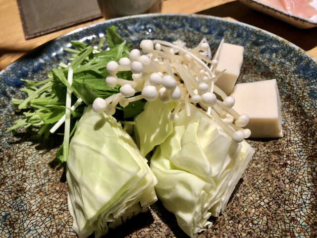 他の席も鍋の進行がとん挫してると思ったら、ご主人の姿が見えた瞬間に、一斉にどの席にも野菜盛りが供されました(笑