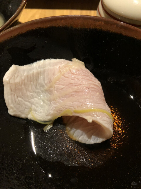胸肉は、恐らく刺身でも食べられるであろうと判断し、限りなく、極々表面が薄ら白ずんできたら、サッとポン酢に上げて、間違い無く美味。
