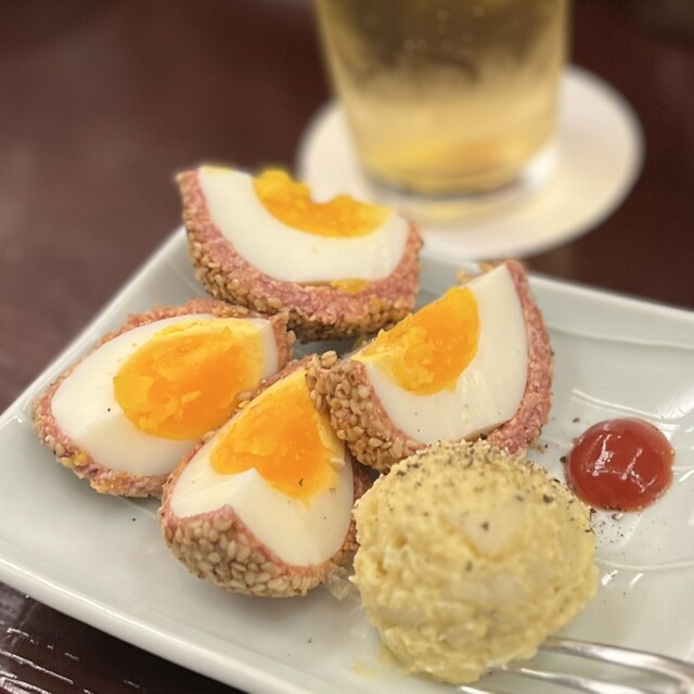 かなり久し振りの再訪っ! お通しの殻付きピーナッツ♡有難し! やはりココはこだわりの銀座ハイボール! 3人で小1時間で、一人3杯お代わり(笑 ・冷したぬきチーズ ... 詳細を見る