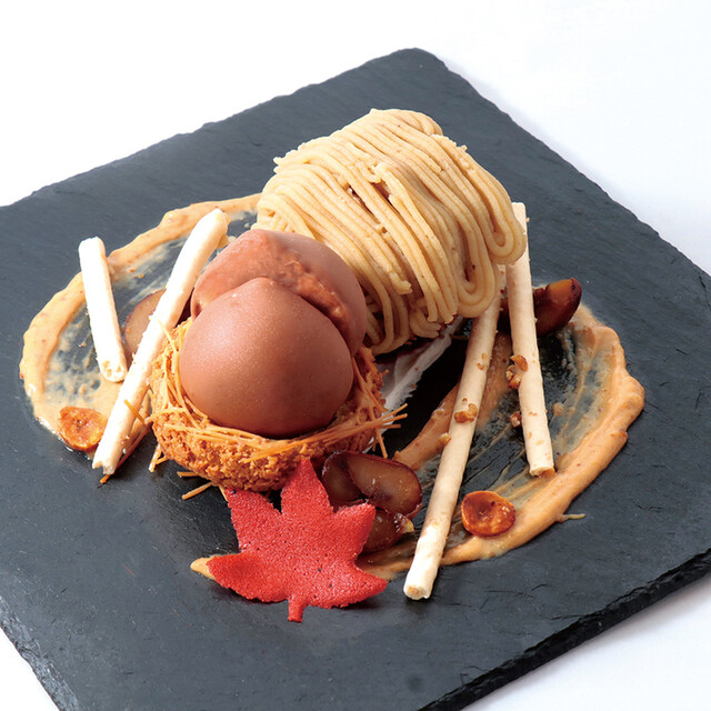飲み物2種が選べて、ケーキが選べるシステムです。飲み物は紅茶を、ケーキはモンブランをお願いしました。