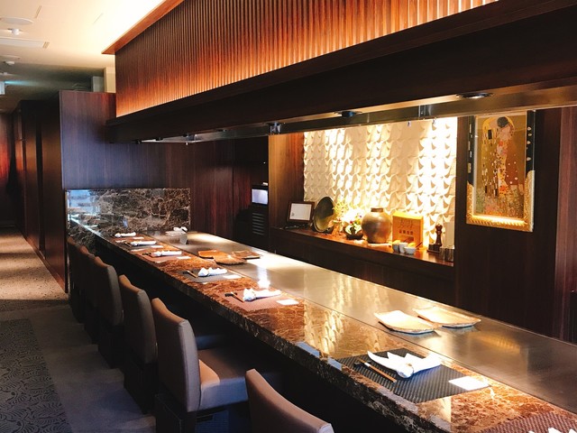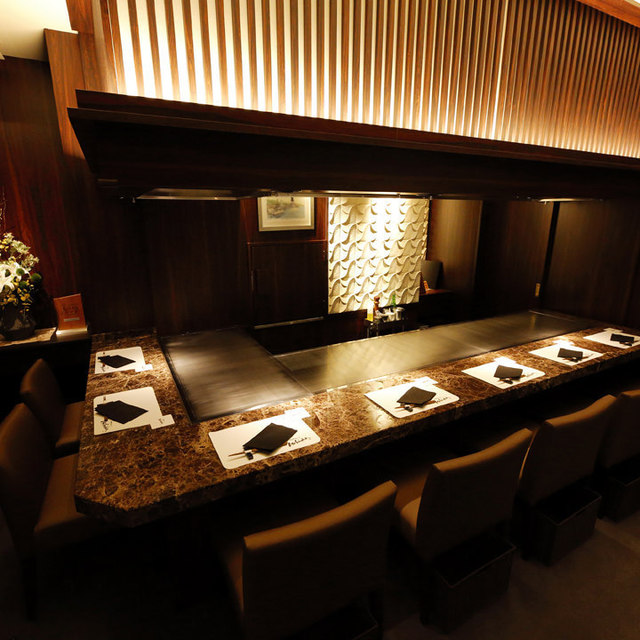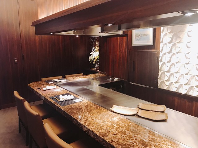お店は鉄板焼きやさんらしく長くとられたカウンター、別室でも7.8人は掛けられるカウンターがありました。