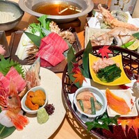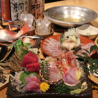 季節の食材と当店人気の本日仕入の焼き魚を組み合わせたコースです。その他赤字覚悟の名物刺身5点盛りや海鮮しゃぶしゃぶなどが揃う贅沢なメニューに仕上げています。 ※小分け提供をご希望のお客様は事前にご連絡下さいませ。