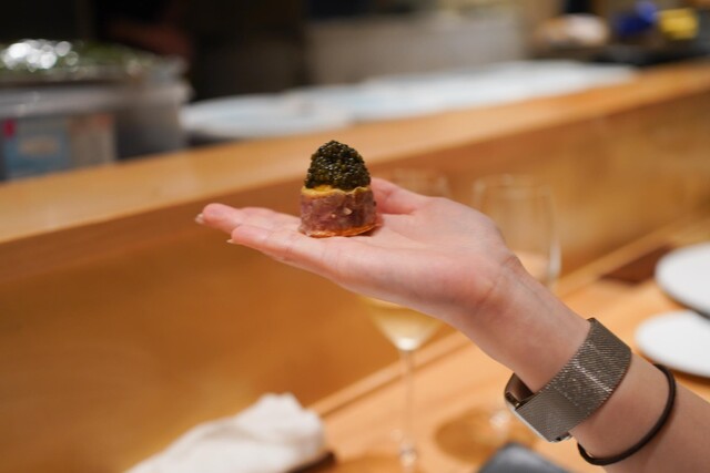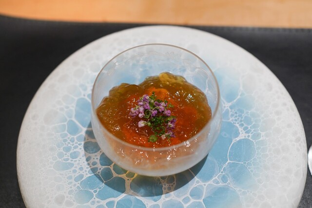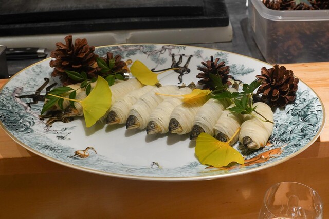 最初に量の確認がありますが、いつものように私は中盤の八寸まではレギュラーサイズで。様子を見て後半を調整することに。