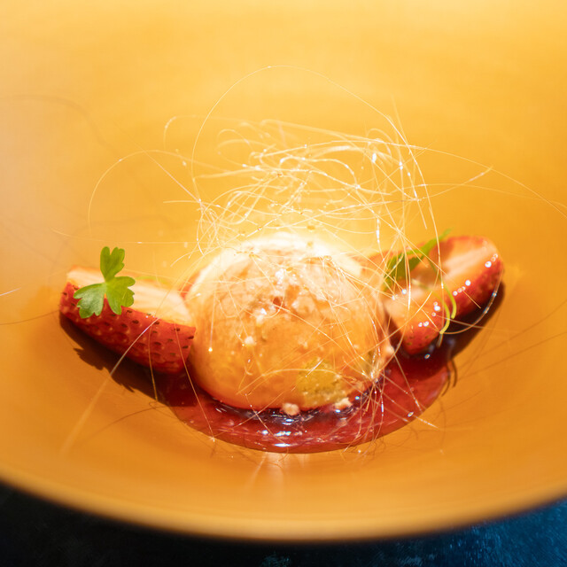 目の前で繰り広げられるパフォーマンスを肌で感じ五感で味わうシェフズテーブル。そのお席で体感して頂く鉄板を駆使したフレンチのお店です。 シェフ藤丸貴成ならではのエッセンスを加え、フランス食文化の継承、素材への敬意を一皿に込め、食材が生み出す素晴らしさや美しさ、日本をはじめフランスや世界各地の食材との調和もお楽しみ下さい。 扉を開けた瞬間から始まる非日常的空間を余す事なくご堪能ください。