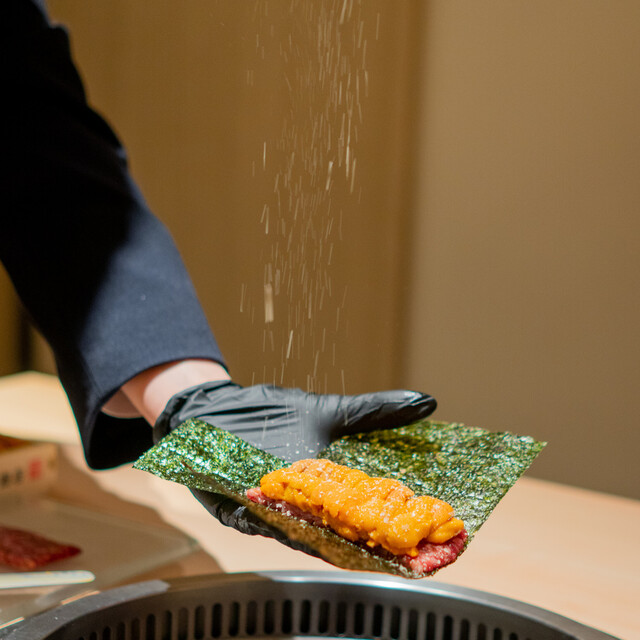 日本が誇る最高級の食材である”和牛”に懸ける想いを体感してもらいたい。 神戸ビーフ、松阪牛、近江牛、万葉牛、山形牛、花乃牛など、日本各地の選りすぐりの和牛を仕入れ、特に”ヒレ”に拘り尽くし、今までに味わった事の無い”人生を変えるヒレ”を提供します。 祝【新宿うしみつ開店記念コース】 「和牛雲丹ユッケドッグ ~目の前仕上げ~」「厳選和牛ヒレのブリオッシュサンド」新商品「特選和牛ヒレの焼きすき 〜トリュフ、濃厚卵黄〜」をご提供!厳選された至極の焼き物を部位に合わせた拘りの薬味で提供。