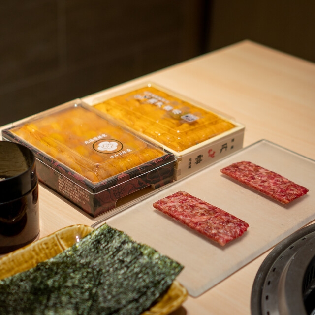 【和牛のちかみつ雲丹ユッケドッグ〜雲丹の2列乗せ〜】