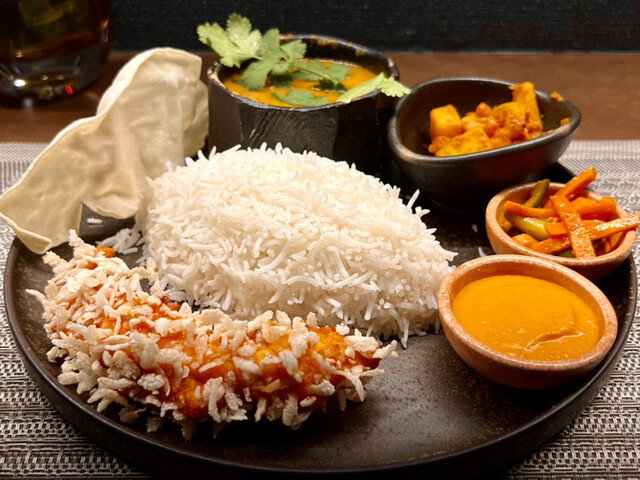 南インド料理をベースに伝統的な技術を用いつつ、日本の旬の素材やジビエなど、枠にとらわれないモダンな発想で仕上げた独創的な一皿をお楽しみ頂けます。
