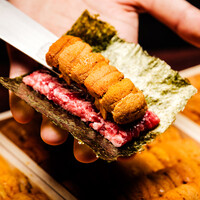 個室確約【姉妹店 銀座ちかみつ焼肉百名店2025受賞記念コース】「厳選和牛の蟹・いくらユッケドッグ」「和牛ヒレのブリオッシュカツサンド」更に厳選された焼き物6種を部位に合わせた薬味で提供10品