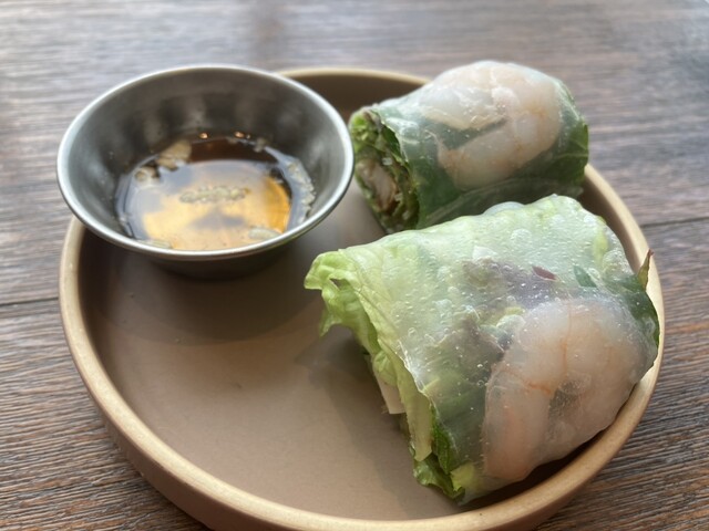 祝日の12時に予約訪問。 お店のオシャレ感を楽しみに行ったのに、前日予約だったため、席が入り口すぐのカウンターだったのは残念。 ホリデーランチ メインはベトナムチャーハンをセレクト ベトナムチャーハン食べたことないから楽しみ♪ まず前菜の生春巻き、エビトースト、蒸し鶏をいただく ... 詳細を見る