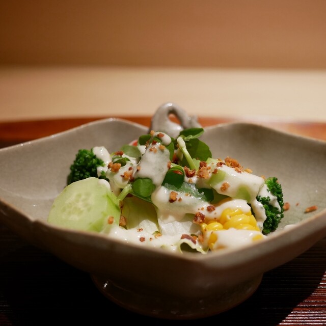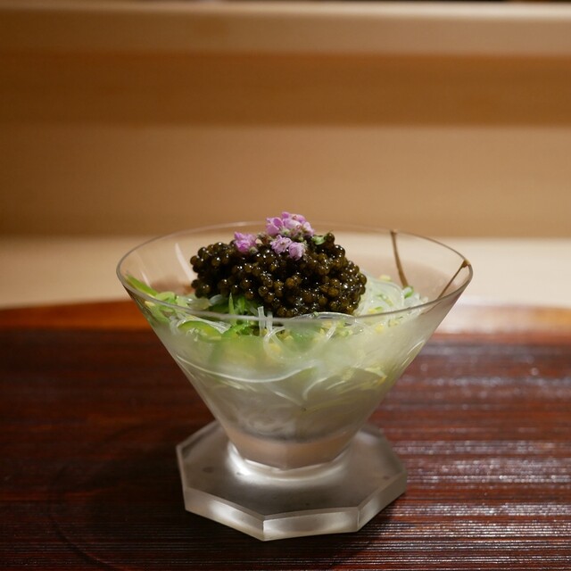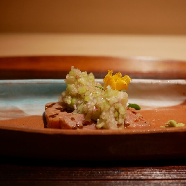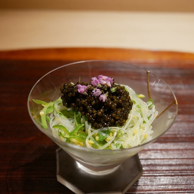 久我山エリアで名を轟かせた【久我山 器楽亭】が【銀座 鼓門】として銀座の地でオープン。日本の四季折々の食材を独自のアプローチで掘り下げ、和食というカテゴリのなかで食材を活かし、当店ならではの季節の料理へと昇華。奇をてらわないが、飽きのこない和食をコース仕立てでご堪能ください。店主が情熱を注いで選ぶ氷温貯蔵の日本酒とブルゴーニュ中心のワインでお酒と楽しむ食体験を、洗練された空間でおもてなしいたします...。