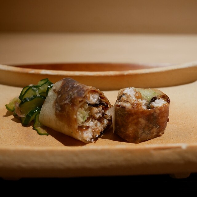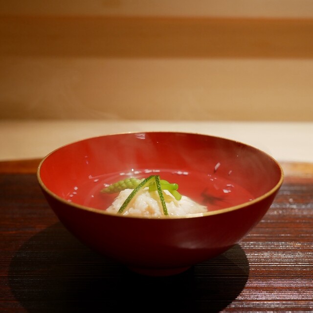 諸般の事情により大将のお料理をいただくのはほぼ1年ぶりであった。 この1年間にまた少し進化しておられた。まずはグリーンアスパラの香煎揚げからスタートする。小さなバーガー袋に入... 詳細を見る