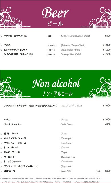 | ドリンク | カクテルあり、カクテルにこだわる |