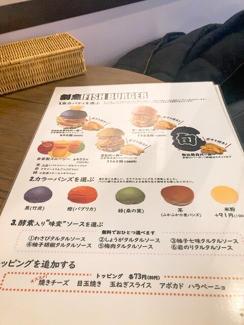 東京駅からゆっくりご飯ができる場所を求めてフラフラ歩いていたところ、お魚を使ったパテのバーガーのお店のこちらが目に入りました。