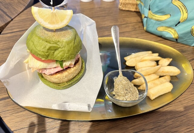 鯖バーガーを食べました。盛り付けが良かったので期待して食べましたが、レタスが酸化していたり、付け合わせの惣菜が古びた香りがするなど残念でした。レモネードは甘くなく私好みでした。せっかくよいメニューなの...