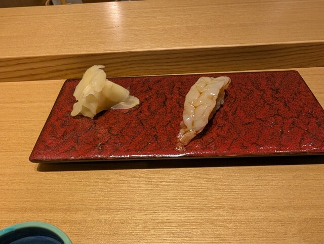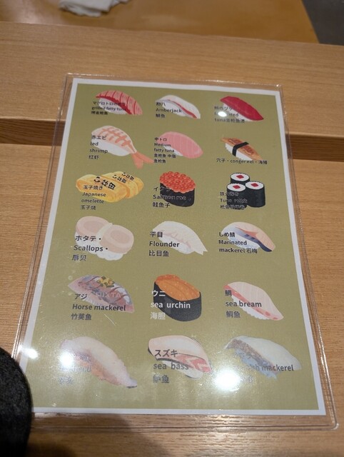 かれい、ライム、まぐろ、かんぱち、えびと、一貫ずつ出ます。名前がわからない時は、