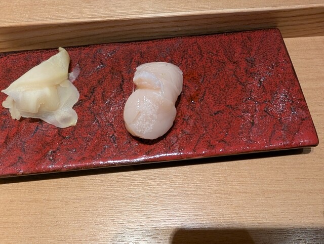 鮨再開。あじ、ほたて、ライムづけまぐろ(マスタードつき)、茶わん蒸し。