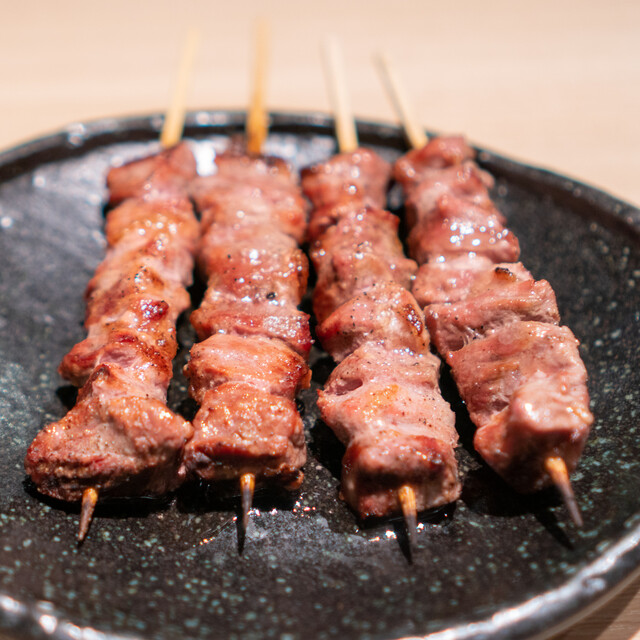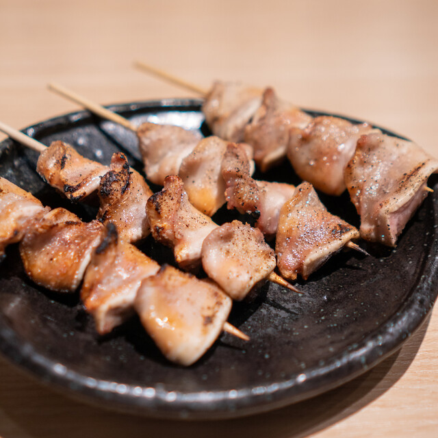 やきとん たまや商店は豚肉の鮮度に特にこだわった本格派のやきとんです。新鮮なお肉を直送しすぐに丁寧な下準備をして串うちします。串の形は扇形。手前小さく一口目のお肉は大きく。これが1番お肉の味を美味しく食べられる最高の串の形です。その他にも低温調理で食べる刺身やレバテキ、こだわりの一品料理が並び、やきとんは1串180円(198円)~ととても良心的に提供させていただいております。