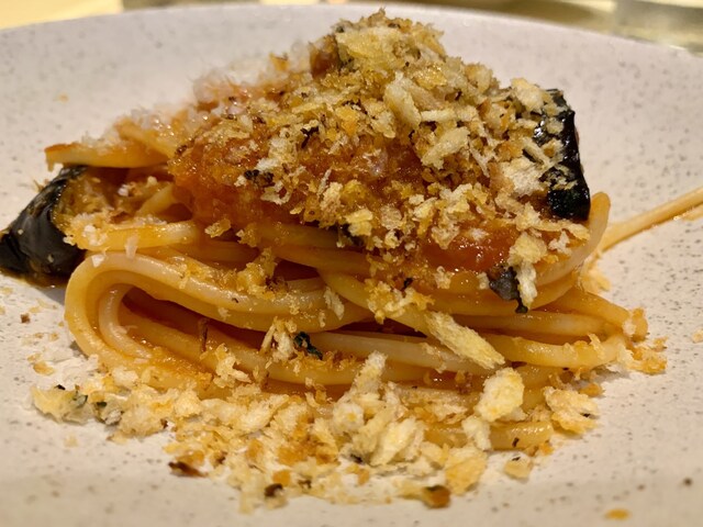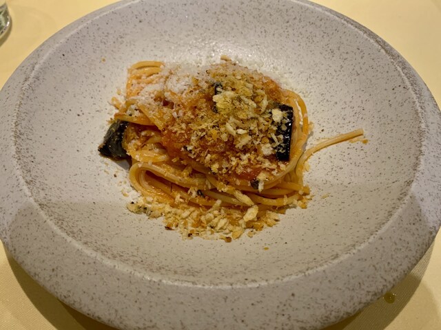 茄子のポモドーロ的なパスタ。麺は先ほどより太めになってました。
