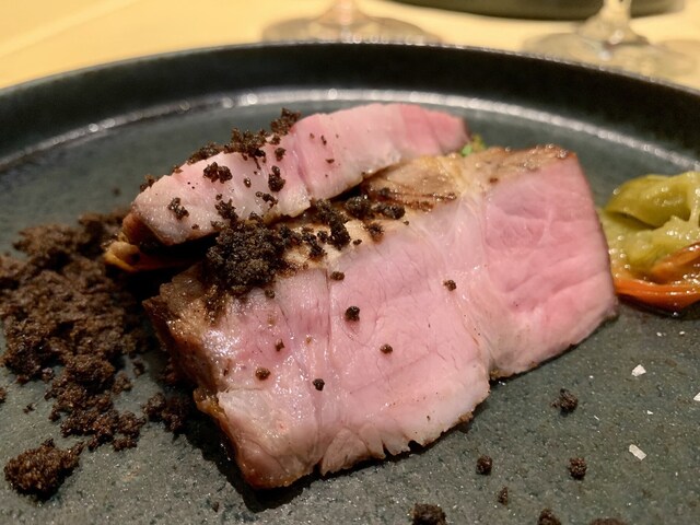 2週間熟成させた豚肩ロース。スモークで豚肉自体の味が濃くて美味しい。脂もものすごく上品です。これは美味しい。
