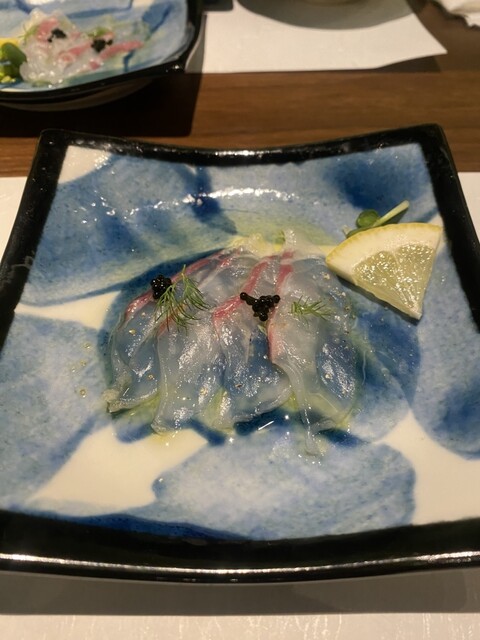 薄く引かれたヒラメの身に、柑橘の酸味とオリーブオイルが香る爽やかな一皿。