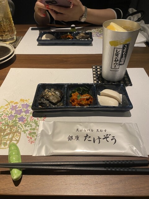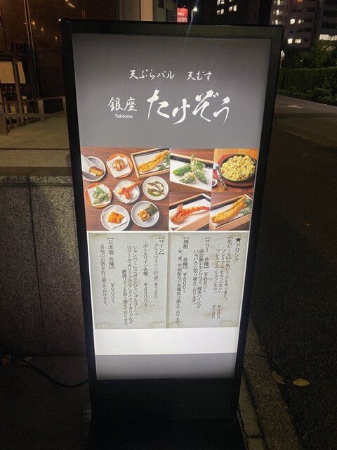 東銀座の裏通りにある「天ぷらバル たけぞう」。