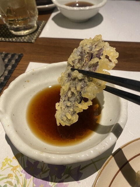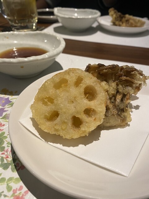茄子は中がとろりと甘く、蓮根はシャキッと歯切れよく、どれも素材の持ち味を引き出す見事な揚げ加減。