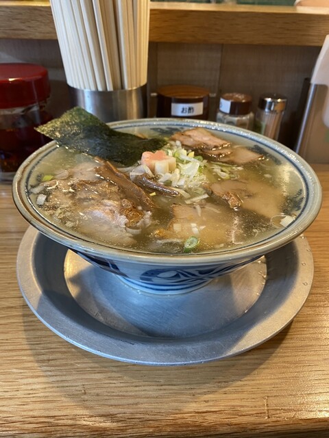 特製中華そば(1,600円) を注文。 卓上にはラー油、胡椒、酢、紙ナプキンと爪楊枝。 必要なものが過不足なく揃った、気持ちのいいセッティングです。(ちょっと取りづらい位置... 詳細を見る