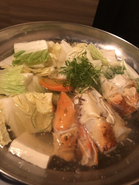 飲み放題プラス蟹鍋のコースで伺いました。枝豆、鍋は着席する前から席にセットしてありました。お酒は濃いめが注文できるのがありがたかったです。