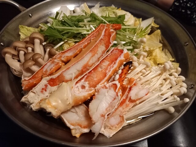 和牛からお魚のお刺身、蟹鍋、カニクリームコロッケ、蟹を含んだ天麩羅、蟹のフルコースでした。