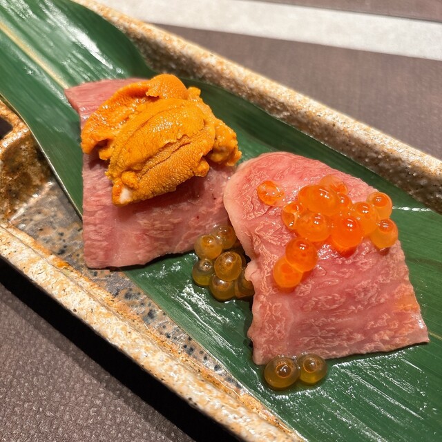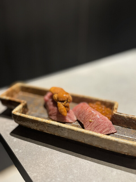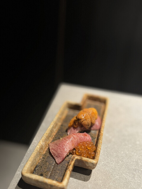 まず【黒毛和牛鮨】でぶっ飛んだ。2貫だけなのに、なんか宇宙感じた。モモとサーロインの上にイクラとウニが乗ってて、こんなんもう反則じゃん?口の中でふわっととろけて、気づいたら「うまっ…」って声出てた。周りの人に聞かれてたかも。...