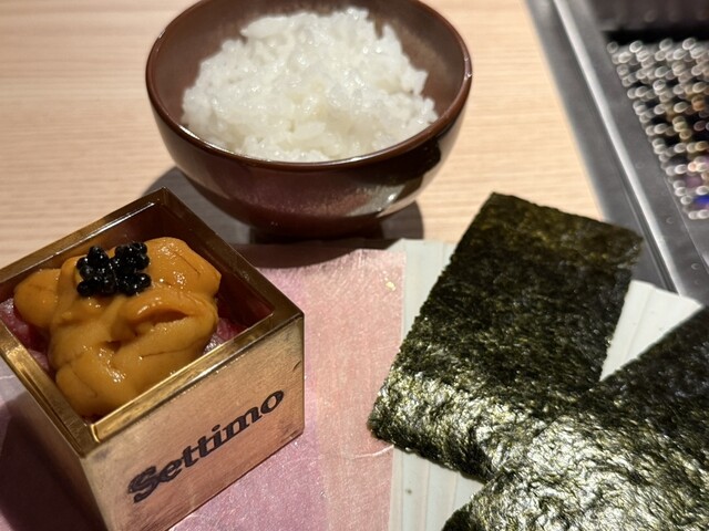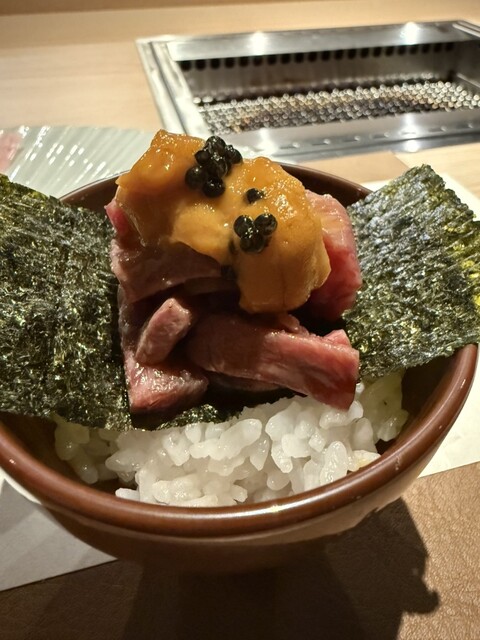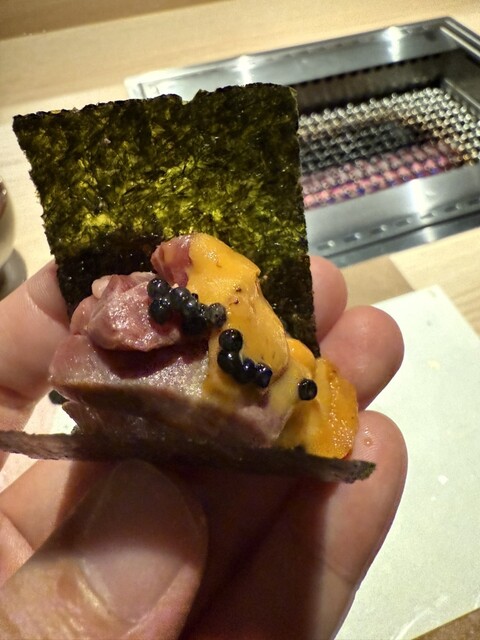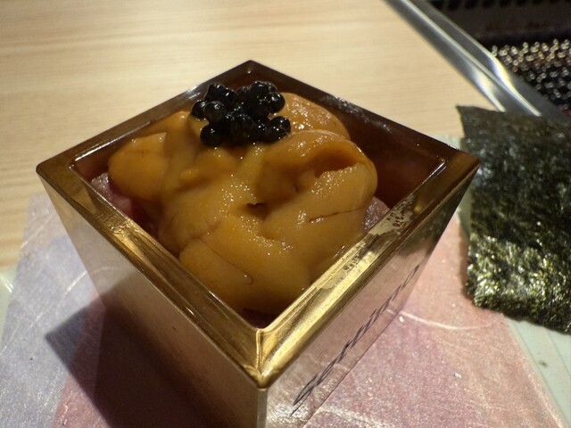 逸品の炙りユッケと雲丹×キャビアは反則。