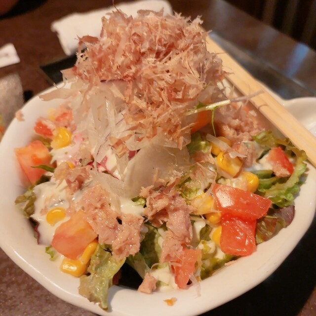 マグロのオイル漬けの入ったサラダ、煮付け、ねぎま鍋などマグロ三昧