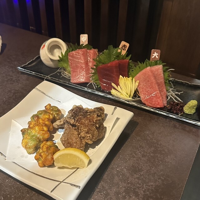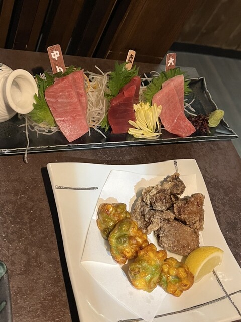 地方から友人が上京したので 今年最初の忘年会! 2人ですけどね〜(笑) 『本鮪贅沢コース(6000円)』 2時間飲み放題付き - - - - - - - - - - - - - - - - - - - ◆季節の前菜三種 ・鮪の角煮 ・ネギトロ乗せ玉子焼き ・鮪の酒... 詳細を見る